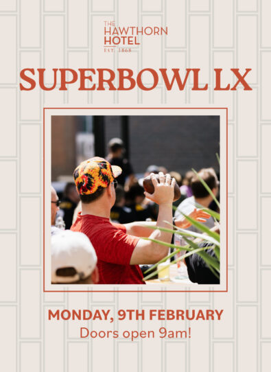 Touchdown at the Hawthorn Hotel for the biggest game of the year! LIVE & LOUD across all screens with a special American menu, cheerleaders & face painters. Plus add on our Punters Pack to your booking for $90pp!