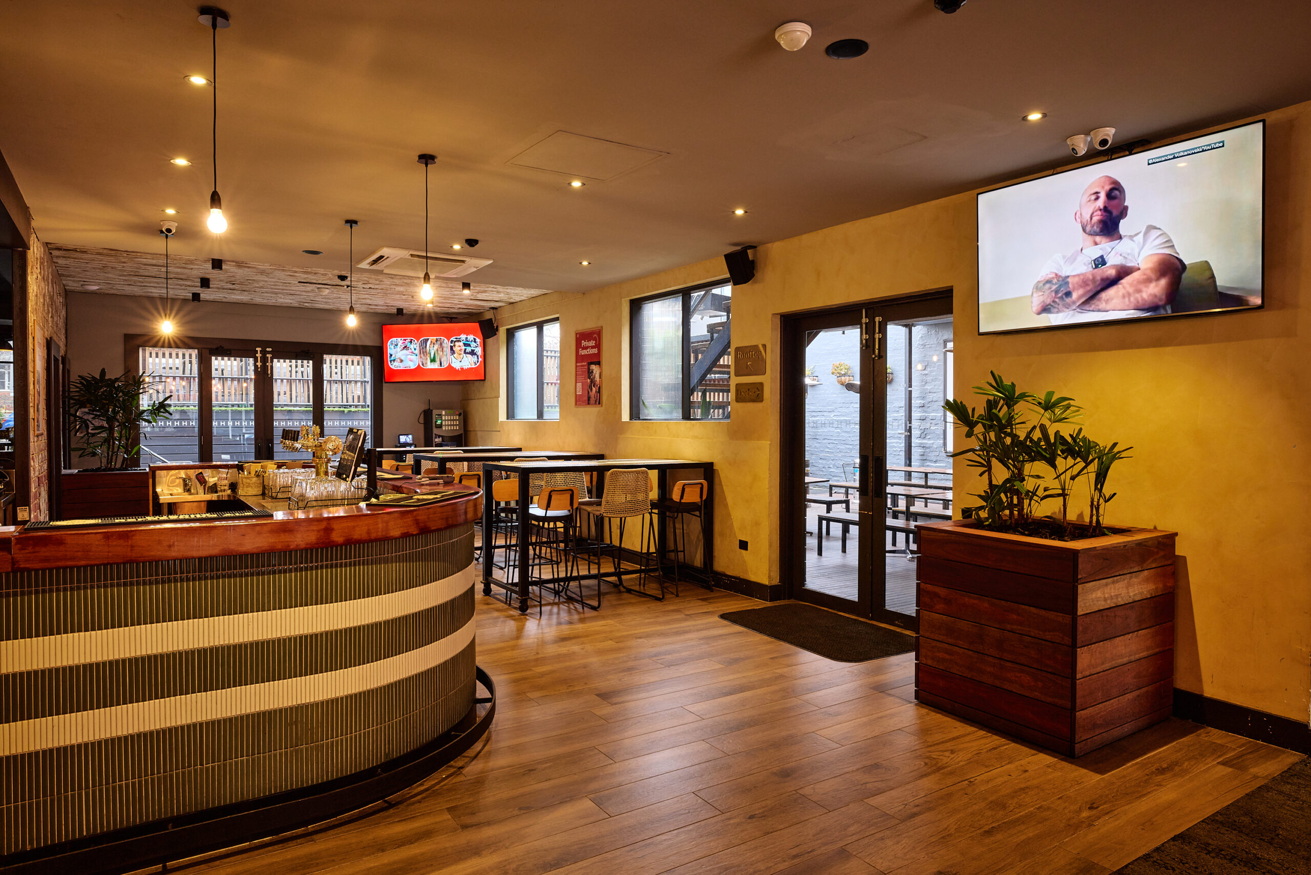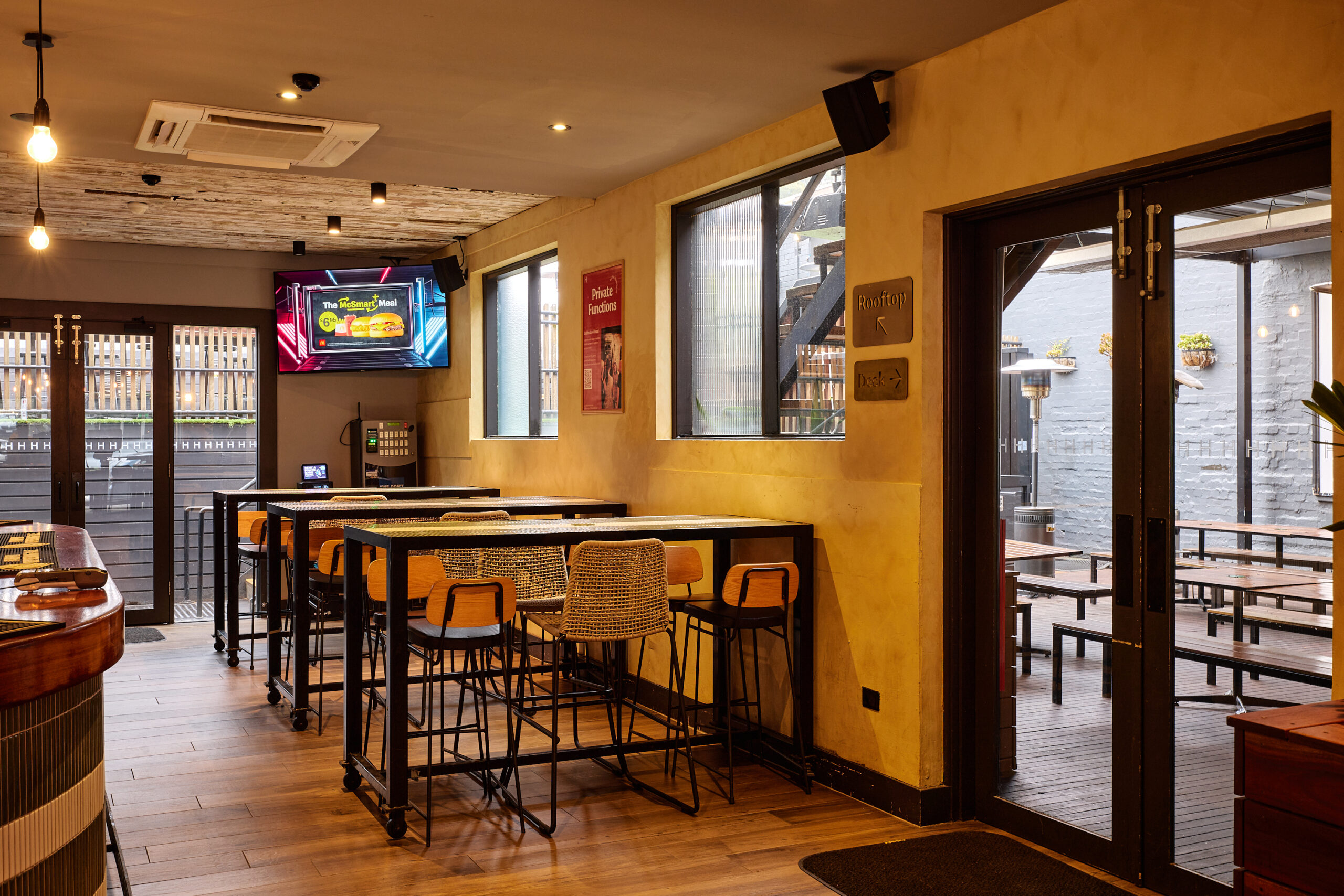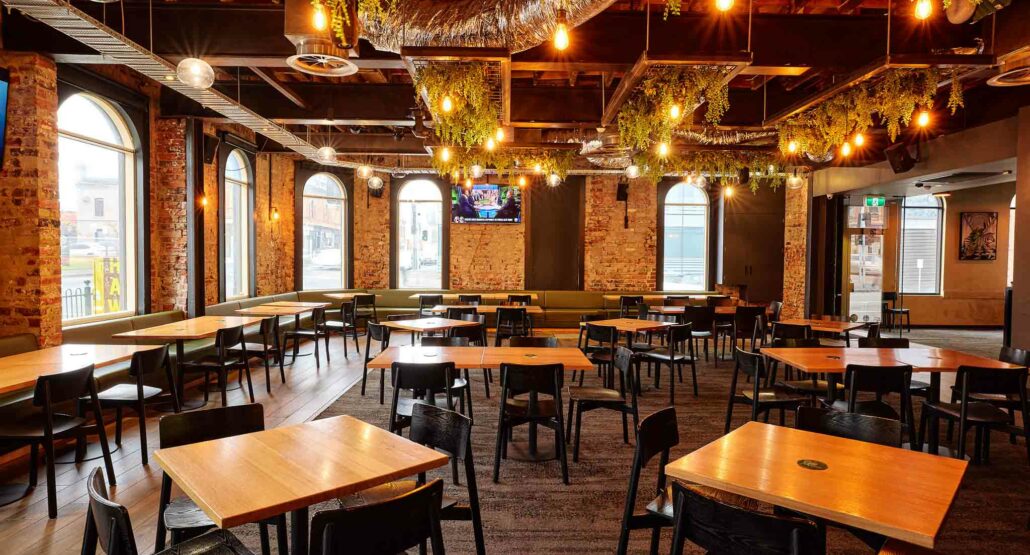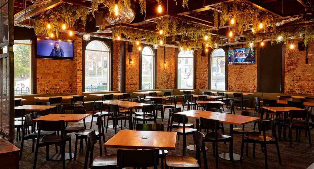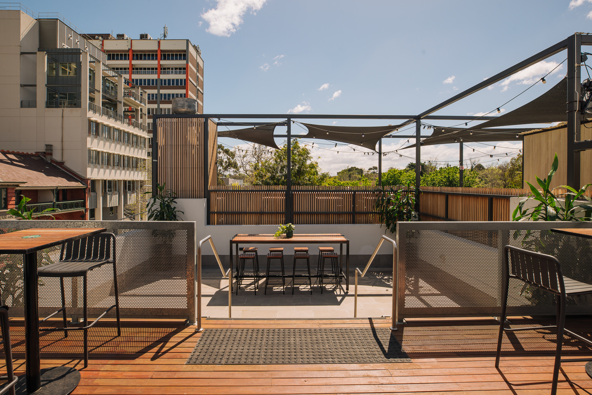 The Lower Deck at Hawthorn Hotel is ideal for watching the AFL, featuring a retractable cover. It seats 40 guests or accommodates 80 standing, providing a comfortable and versatile outdoor space.
