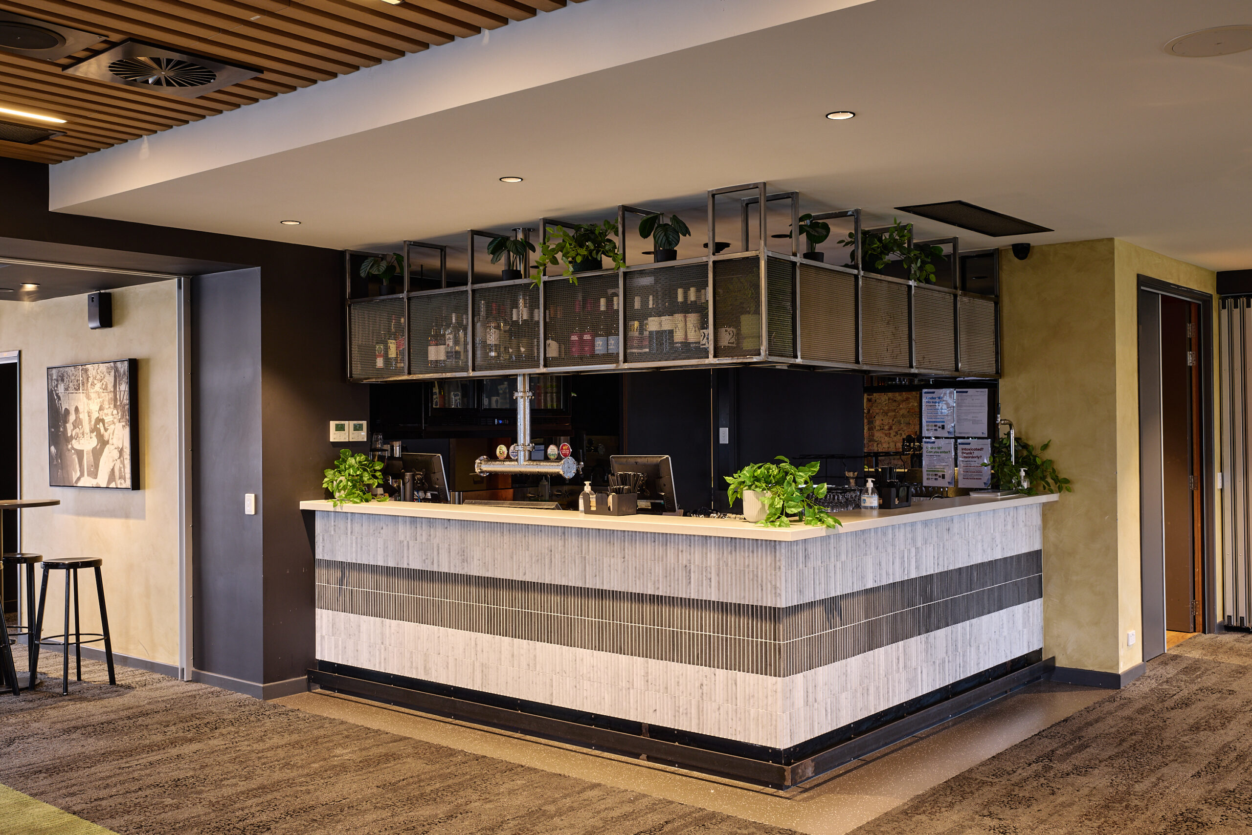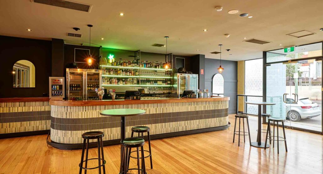The Sports Bar at the Hawthorn Hotel is perfect for farewell drinks, featuring high-top tables. While not private, it seats 20 guests or accommodates 50 standing, providing a lively and casual atmosphere.