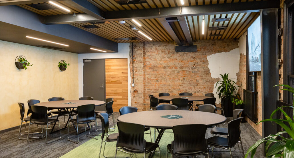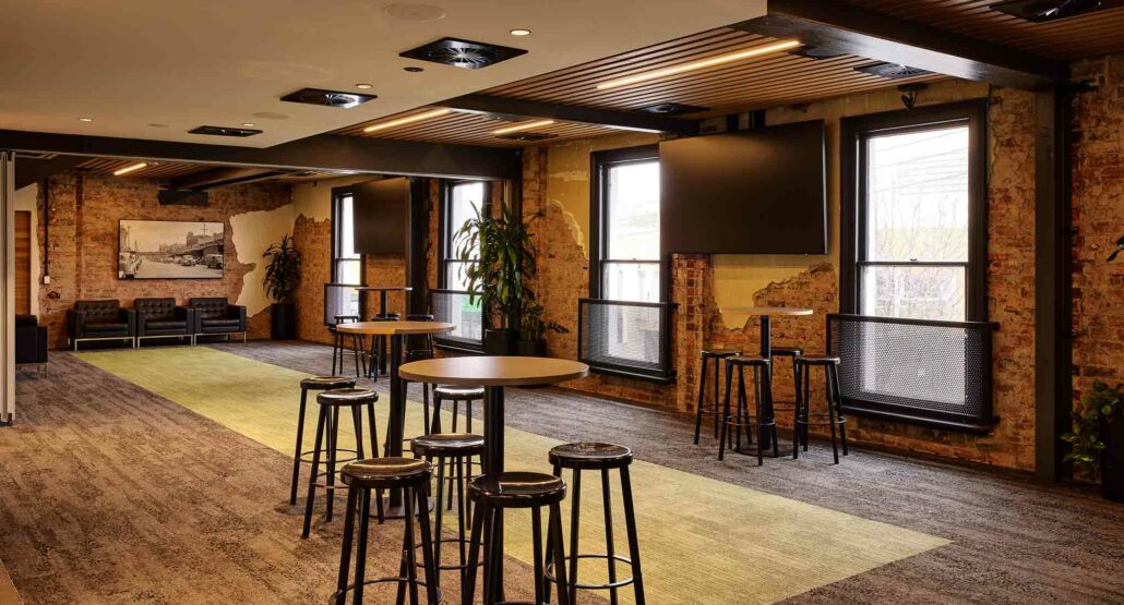 The Alumni Lounge + Deck at the Hawthorn Hotel is perfect for corporate workshops, offering a comfortable space for 25 seated guests or 80 standing. Enjoy a professional and stylish environment for your next business event.