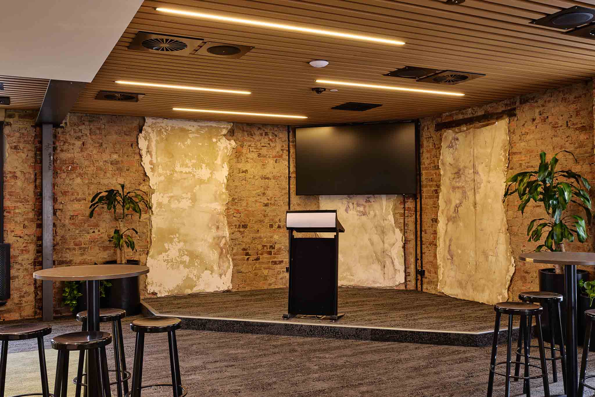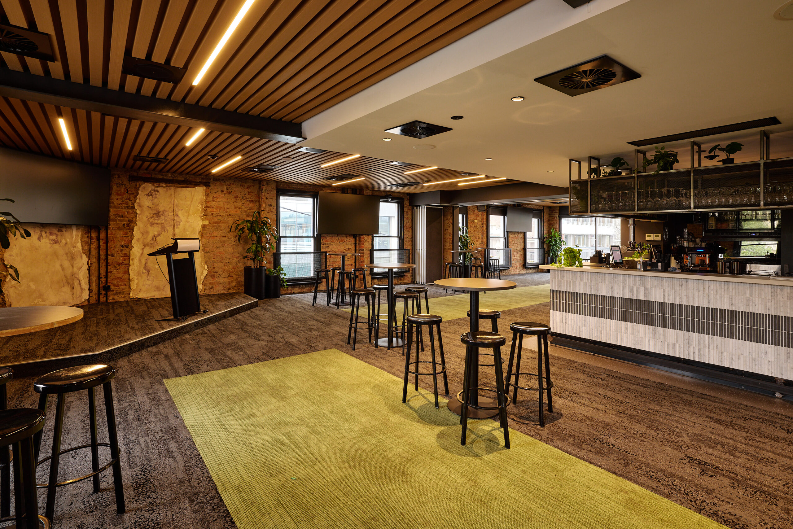 This combined space on Level 1 is perfect for any gathering. It comfortably seats 60 guests or up to 120 guests standing. With a raised stage area, mixture of both high and low tables plus outdoor deck – it’s the ideal space for your next corporate event.